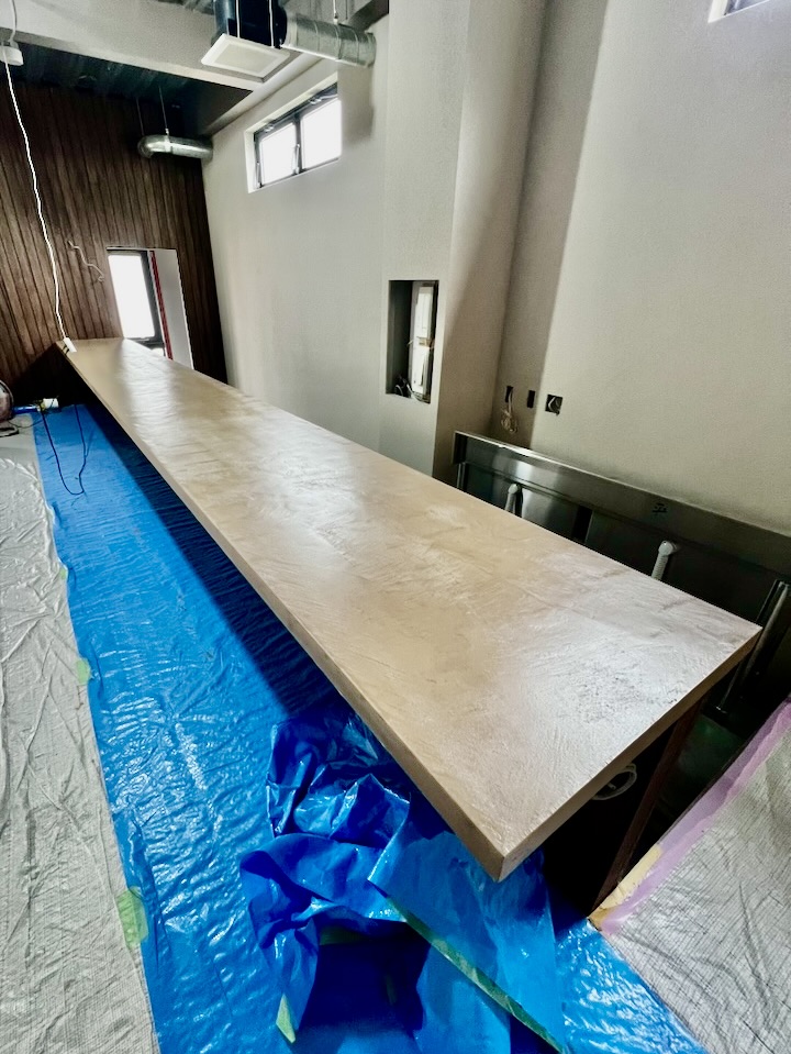 目黒区の飲食店にて、カウンターにモールテックスを施工させていただきました。